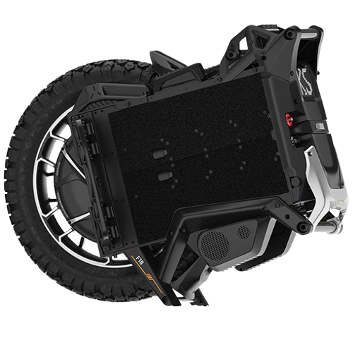 Der KingSong F18 beeindruckt sofort durch seine hochwertige Verarbeitung und sein durchdachtes Design, das futuristische Linien, eine robuste Konstruktion und praktische Details vereint. Der Rahmen besteht aus einer widerstandsfähigen Magnesiumlegierung und wird durch Elemente wie einen Carbon-Tragegriff ergänzt, die die Haltbarkeit bei der Handhabung und die Gesamtsteifigkeit während der Fahrt erhöhen. Die Abmessungen des Einrads im zusammengeklappten Zustand betragen 62 × 39 × 81 cm und wirken angesichts der gebotenen Leistung überraschend kompakt. Die Konstruktion ist modular – Motor, Beleuchtung oder Lautsprecher lassen sich dank eines intelligenten Stecksystems schnell austauschen, was Wartung und Upgrades erheblich erleichtert. Zur Ausstattung gehören außerdem vordere LED-Scheinwerfer mit 4 × 5 W Leistung und einstellbarem Leuchtwinkel, die auch bei hohen Geschwindigkeiten und völliger Dunkelheit für Sicherheit sorgen. Reifen der Größe 2.75-14 (20") bieten Stabilität, Traktion und Komfort selbst auf schlechteren Untergründen oder leichtem Gelände. Das größte technologische Highlight ist jedoch die 4-Punkt-Federung mit bis zu 100 mm Federweg und 25 verschiedenen Dämpfungseinstellungen, die es ermöglicht, das Fahrverhalten individuell anzupassen – von sportlich-dynamisch bis hin zu weich und komfortabel für lange Strecken. Der KingSong F18 verbindet Design-Eleganz, Robustheit und Praktikabilität mit fortschrittlicher Technologie und ist damit ein echtes Premium-Produkt.