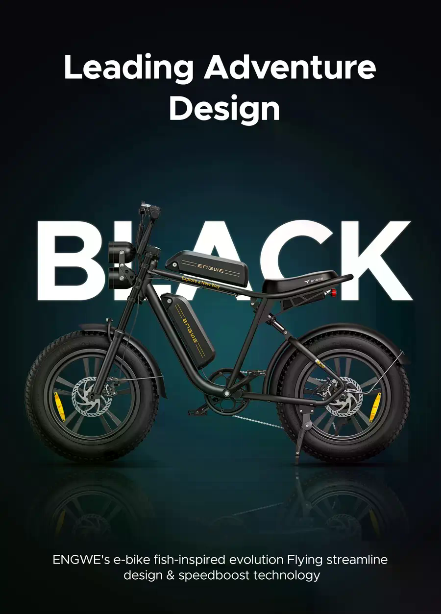 ENGWE M20 – leistungsstarkes E-Bike mit 750-W-Motor (1000 W Spitzenleistung), 48 V / 13 Ah (624 Wh) Akku, einer Reichweite von 75–150 km, einer Geschwindigkeit von 45 km/h, Vollfederung und 20×4.0 Fat-Reifen. Ideal für Stadt und Gelände.