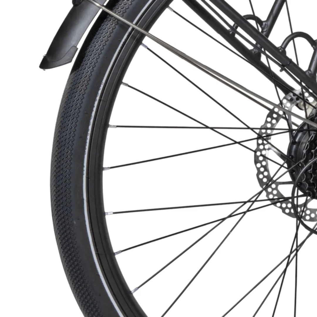 Im Herzen des MS ENERGY C40 befindet sich ein leiser und effizienter 250 W Hecknabenmotor, der von einem 36 V / 10 Ah (360 Wh) Lithium-Akku gespeist wird, der vollständig in den Rahmen integriert, aber leicht entnehmbar ist. Der Motor bietet eine sanfte Tretunterstützung und erreicht eine maximale Geschwindigkeit von 25 km/h, ideal für den städtischen Einsatz. Eine Reichweite von bis zu 60 km hängt vom gewählten Unterstützungsmodus, Gelände und Fahrergewicht ab. Das Laden dauert nur 4–6 Stunden, sodass das Fahrrad über Nacht aufgeladen werden kann und morgens mit voller Batterie startklar ist. Das 8-Gang Shimano-System ermöglicht optimale Anpassung an unterschiedliche Bedingungen, sei es bei steilen Anstiegen, flachen Abschnitten oder Abfahrten. Das geringe Gewicht von 21 kg sorgt für bessere Beschleunigung und einfachere Manövrierfähigkeit in der Stadt.
