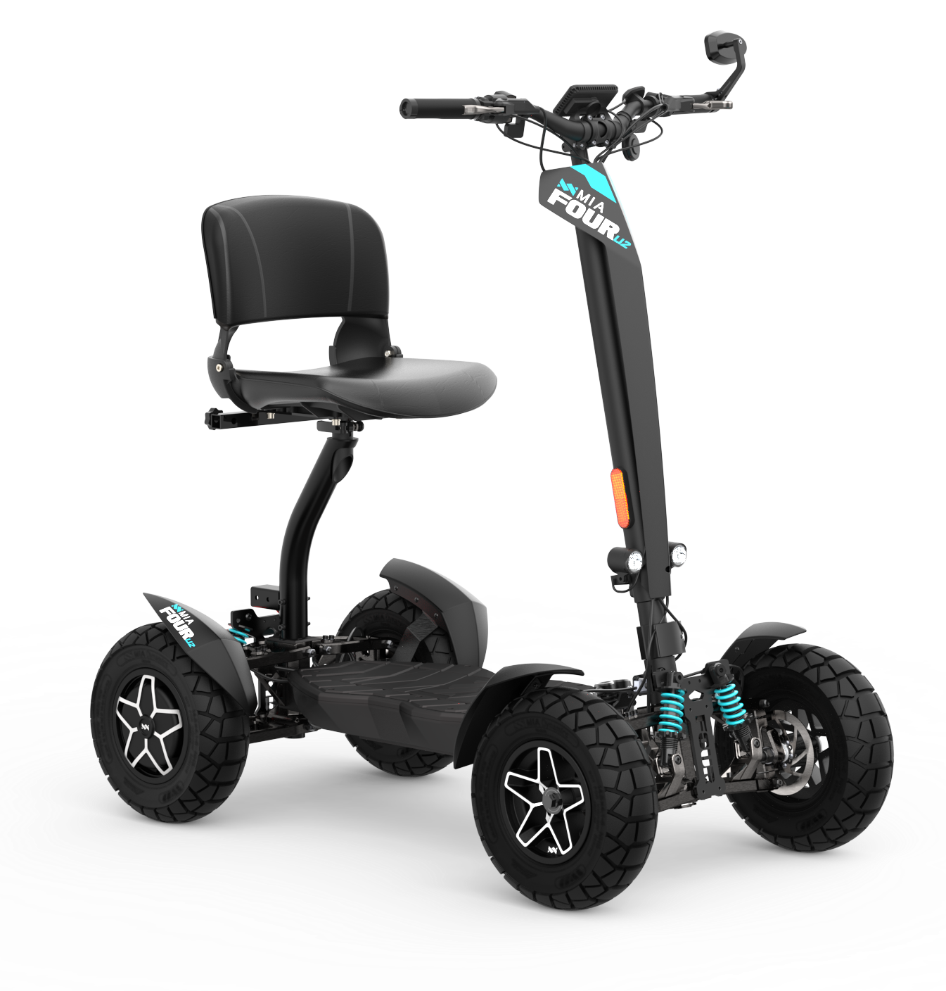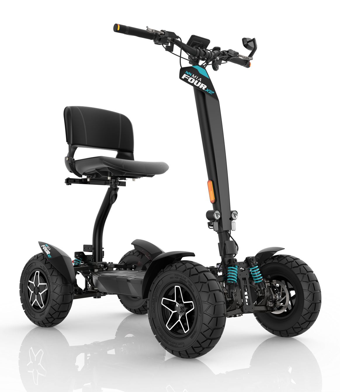 Der MIA Four X2 (Mobility) ist ein zertifizierter Mobilitätsroller (UL2272) mit komfortablem Sitz, Spiegel, Scheinwerfern und einer begrenzten Höchstgeschwindigkeit von etwa 12 km/h, ausgelegt für sichere und komfortable Fortbewegung. Der MIA Four X2 (4×2) Standard stellt ein leistungsstärkeres Modell mit sportlicherem Charakter, höherer Dynamik und weniger Einschränkungen dar, geeignet für Nutzer, die einen aktiveren Fahrstil bevorzugen.