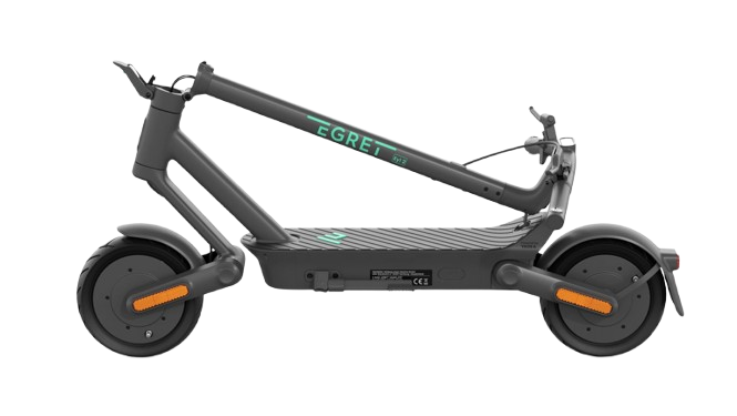 Der Egret Ey! 2 ist als perfekter Begleiter für das tägliche Pendeln, übliche Stadtfahrten oder längere Ausfahrten konzipiert. Dank der stabilen Konstruktion, 10-Zoll-Tubeless-Reifen und der vollständigen Vorder- und Hinterradfederung mit ca. 60 mm Federweg bietet der Scooter hohen Komfort auch auf unebenem Untergrund, Pflaster oder schlechten Straßen. Für den praktischen Alltag steht ein einfacher Klappmechanismus zur Verfügung, der die Kombination mit öffentlichen Verkehrsmitteln oder das bequeme Verstauen in Wohnung oder Büro ermöglicht – und das bei gleichbleibender Steifigkeit und stabiler Fahrposition. Der Wartungsaufwand ist dank hochwertiger Komponenten minimal: Tubeless-Reifen mit Gel-Füllung dichten kleinere Einstiche selbstständig ab, die elektronische Bremse erfordert nur grundlegende Kontrollen, während die vordere mechanische Trommelbremse zuverlässig und witterungsbeständig ist. Die elektronischen Komponenten sind durch eine hohe Schutzart geschützt, sodass der Scooter Regen oder feuchte Umgebungen problemlos bewältigt. Der Akku mit einer Kapazität von 446 Wh bietet eine stabile Reichweite und lädt in 7–8 Stunden, ideal für den normalen Tagesablauf: abends anschließen, morgens losfahren. Dank dieser Eigenschaften ist der Egret Ey! 2 eines der praktischsten Modelle für Nutzer, die ein zuverlässiges Fortbewegungsmittel ohne Aufwand wünschen.