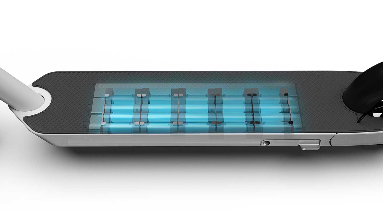 Für den Komfort sorgt die lange Plattform, auf der Sie genügend Raum für Ihre Füße finden. Diese ist mit einer praktischen, rutschfesten Schicht überzogen und ergänzt das gesamte Design des Scooters vollkommen. Eine weitere Komponente des Komforts ist das 9-Zoll Rad mit einem Schlauch vorne. Der Komfort wird jedoch durch das 8,5-Zoll Vollrad hinten gemindert. Dem Komfort steht jedoch der Fakt gegenüber, dass Sie dabei keinen Plattreifen zu fürchten brauchen.