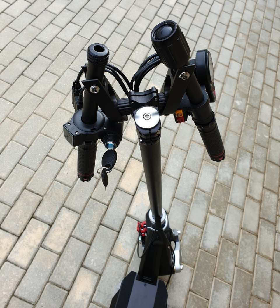 Es handelt sich um keinen typischen, handlichen, städtischen Scooter. Sein Gewicht beträgt 33-35 kg (je nach gewählter Batterie), sodass Sie ihn bestimmt nicht gerne die Treppe hochtragen werden. Dank den kleineren Rädern und insbesondere den klappbaren Lenkern ist er nach dem Zusammenlegen wesentlich kleiner als zum Beispiel die Modelle 10X oder INOKIM OXO. Er passt besser in den Kofferraum beim gewöhnlichen Auto rein, wenn Sie ihn jedoch auf einen längeren Ausflug mit dem Auto mitnehmen möchten (zum Beispiel ans Meer), sind Sie mit dem hinteren Fahrradträger an der Anhängerkupplung besser bedient. Mit Ausnahme seines höheren Gewichts handelt es sich um eine phantastische Lösung für die Stadt, aber auch außerhalb der Stadt. Dank seiner Konstruktion und Leistung handelt es sich um einen der universellsten Scooter der Welt. Angesichts des Antriebs beider Räder macht er auch vor dem Gelände oder einem steileren Hügel nicht kehrt. In der Stadt werden Sie bestimmt seine Leistung bei der Fahrt bergauf und ebenso seine Laufleistung schätzen – Sie brauchen keine Angst zu haben, wenn Sie eine längere Strecke absolvieren müssen, oder keine Zeit zu seiner Aufladung tagsüber haben. In unseren Bedingungen wird er Sie wörtlich mit seinem extrem komfortablen Fahrwerk verzaubern, das auch die schlimmsten Straßen auch trotz der 8 Zoll Vorreifen bewältigt. Dank ihnen brauchen Sie dazu noch keine Angst vor einem Platten haben, sodass Ihre Fahrt um einiges sorgloser sein kann und dank den kleineren Maßen hat er eine noch bessere Beschleunigung als sein Bruder 10X.